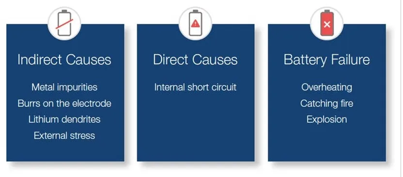大多數(shù)鋰離子電池事故由短路引發(fā)。內(nèi)部短路指的是電池內(nèi)部正負(fù)極之間意外接觸的情況。