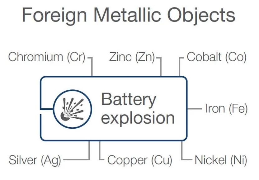 如果在制造過程中意外引入異金屬,鋰離子電池可能會(huì)爆炸